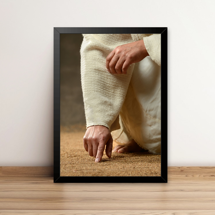 O Quadro Decorativo “O que Jesus escreveu no chão” é uma expressão de amor, entrega e fé.