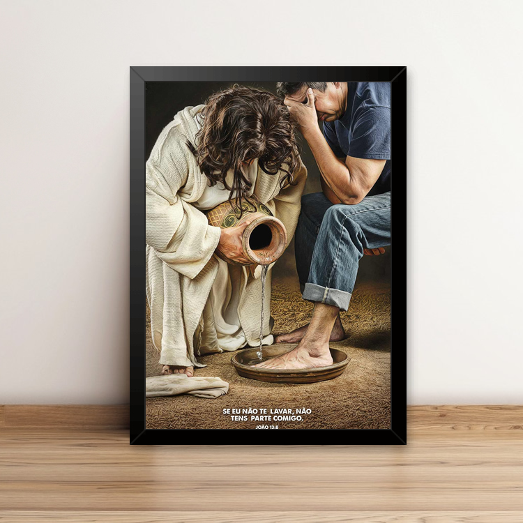 O Quadro Decorativo “Se eu não te lavar, não tens parte comigo João 13 8” retrata um dos momentos mais marcantes do Evangelho quando Jesus, em um gesto de amor e humildade, lava os pés de Seus discípulos.